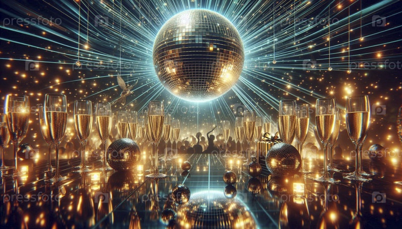 Сцена в ночном клубе с одним гигантским дискотечным шаром, отражающим красочные лазерные лучи во всех направлениях, Ai generated image