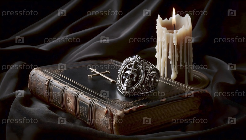 A momento mori ring с крестом и черепом, натюрмортом, Ai generated image