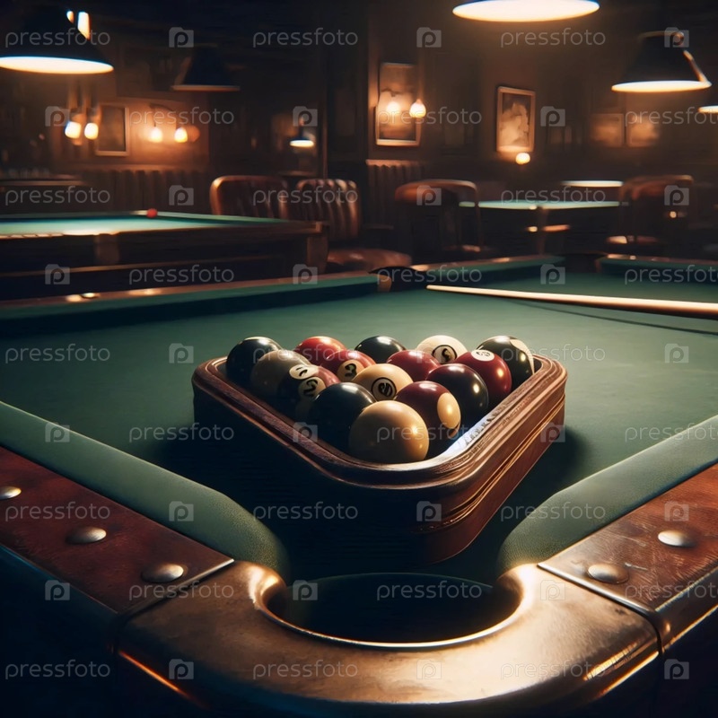 Винтажный бильярдный стол в задымленном зале, Ai generated image
