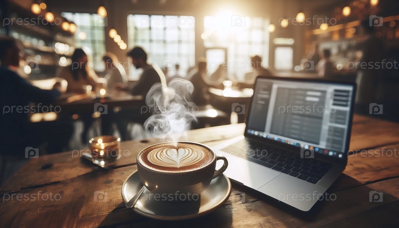 Искусство, ноутбук с чашкой кофе, Ai generated image Lat