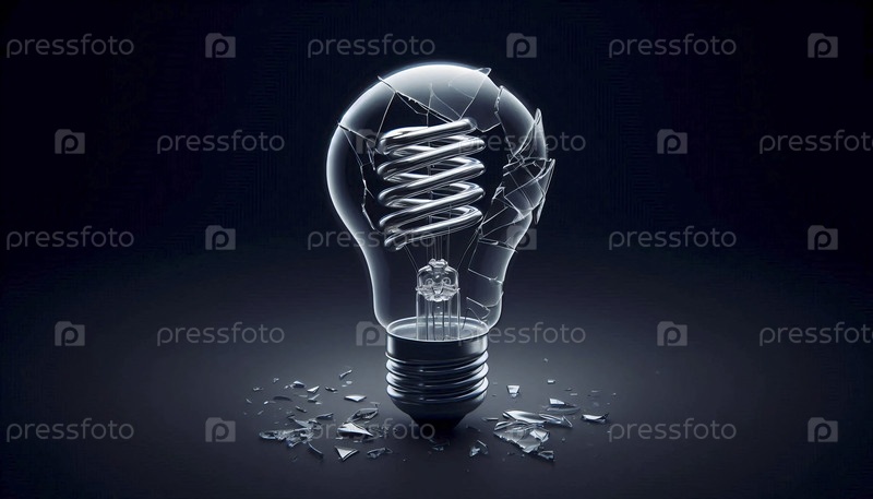 Свернутая нить прозрачной, сломанной лампочки на черном фоне Ai создала изображение