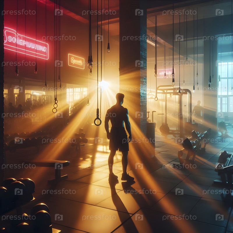 Профессиональный интерьер тренажерного зала с оборудованием для тренировок, Ai created image