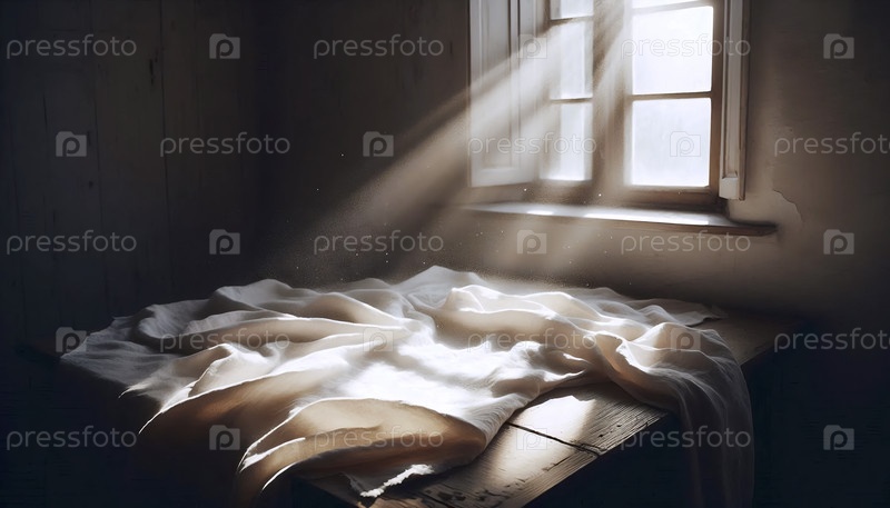 Солнечный свет через окно, образующий крест на льняной ткани, Ai generated image