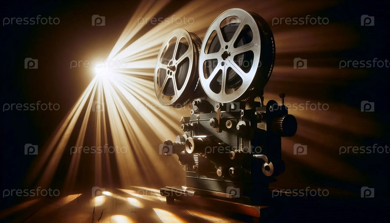 Советский кинопроектор в темной комнате, Ai generated image A