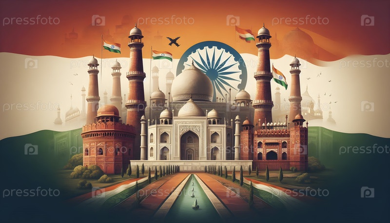 Индийский флаг, реалистичный эффект движения, Ai created image