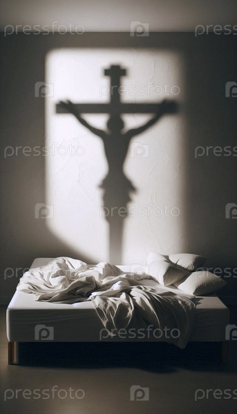 Тень распятия, выложенная на скрученных льнах, Ай создала изображение