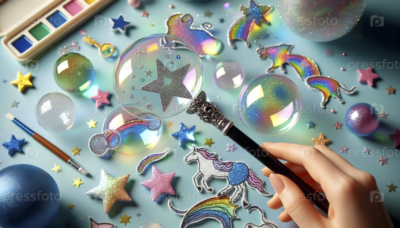 Волшебная палочка, которая создает безвредные пузыри в разных формах, Ai created image
