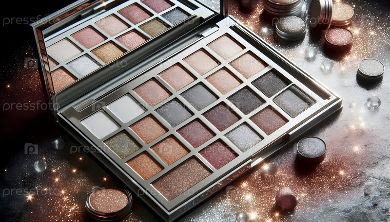 Палитра металлических теней глаз, изображение создано с использованием Ai