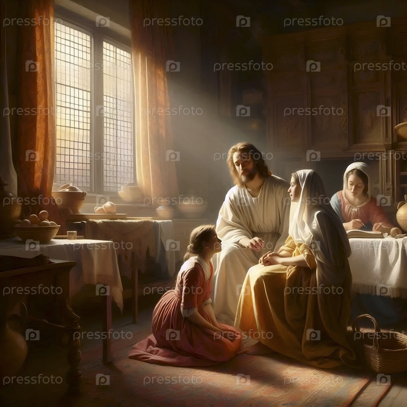 Христос в доме Марфы и Марии, голландский стиль Золотого века, Ai создал изображение