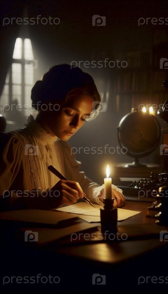 Тихий, созерцательный момент женщины, читающей письмо при свечах у деревянного стола, Ай создал изображение