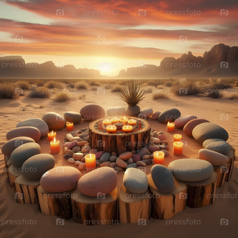 Горячие камни из церемонии потной ложи, расположенные в священном круге, Ai created image