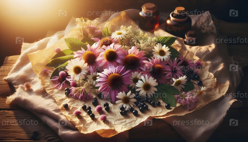 Свежесобранная эхинацея, ромашка и бородавка Ai created image