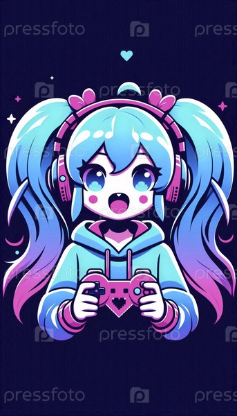 Простой кавайский персонаж с двумя хвостами игровой девушки, Ai generated image