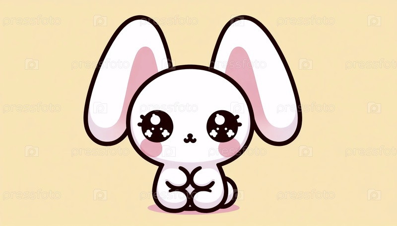 Простой кавайский персонаж краснеющего кролика, Ai generated image