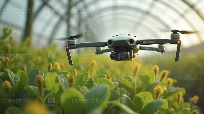 Автономный дрон опыляет культуры в гигантской теплице, Ai generated image