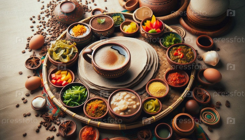 Эфиопский праздник Инжера на основе растений, AI generated image