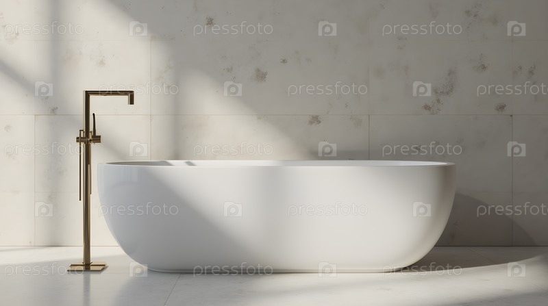 Минималистическая ванная комната со свободно стоящей ванной, изображение создано с помощью Ai