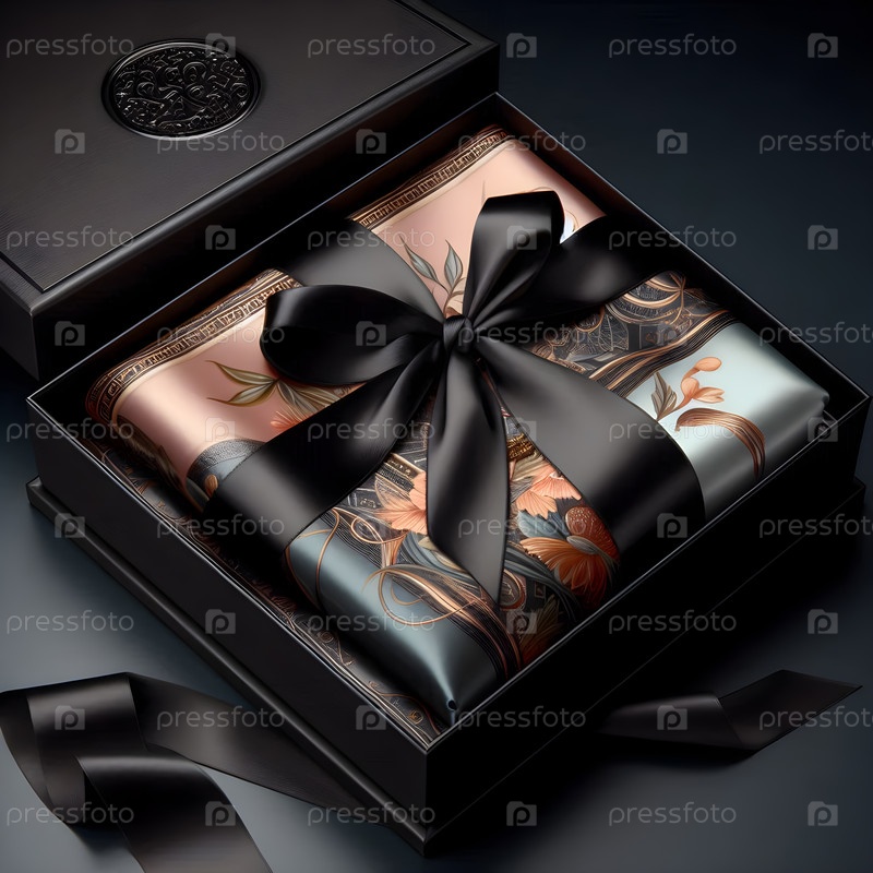 Шелковый шарф в глянцевой черной коробке, изображение создано AI