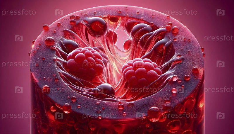 Поперечное сечение, раскрывающее ядро малинового геля, Ai generated image