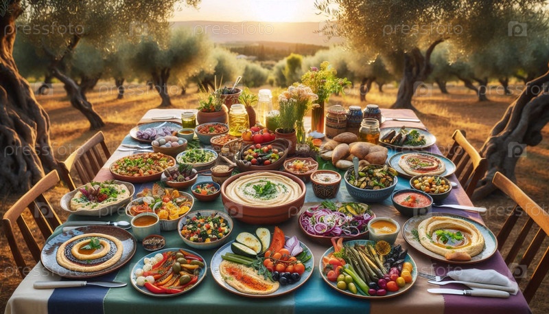 Ближневосточный веганский завтрак, изображение создано искусственным интеллектом