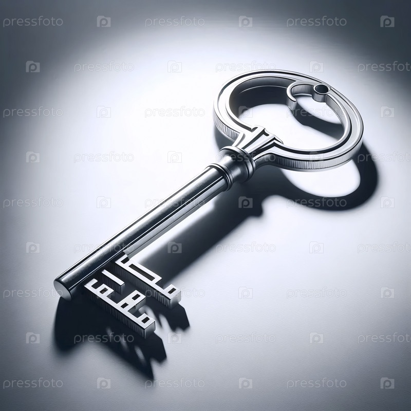 Один сложный ключ на белом фоне, его запутанные разрезы и зубы с абсолютной ясностью, Ай создал изображение