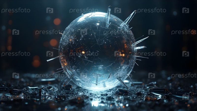 Расколотая стеклянная сфера, изображение создано с помощью Ai