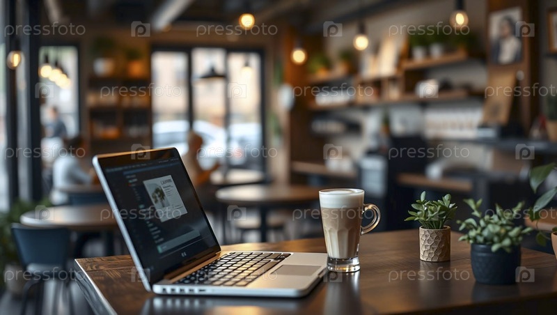 Искусство, ноутбук с чашкой кофе, Ai generated image Lat