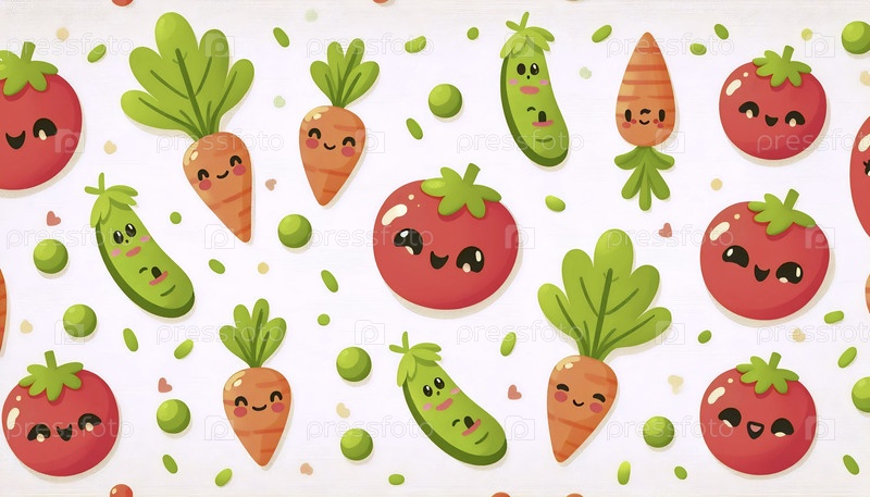 Образец садового сада фруктов и овощей kawaii для кухонного инвентаря, Ai generated image