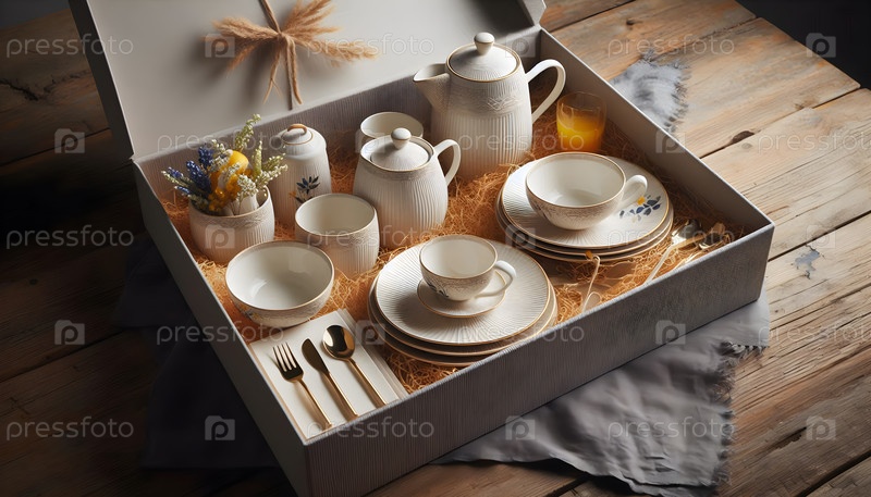Порцелановый набор посуды для ужина, изображение Ai-генерированное