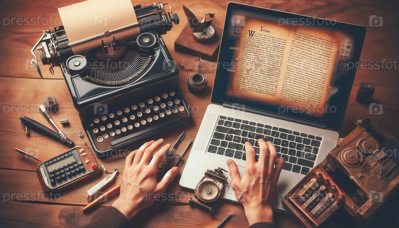 Руки, печатающие на клавиатуре в творческой атмосфере рабочего пространства, Ai generated image