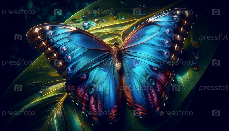 Редкая голубая морфо-бабочка Ближайший план, Ai generated image