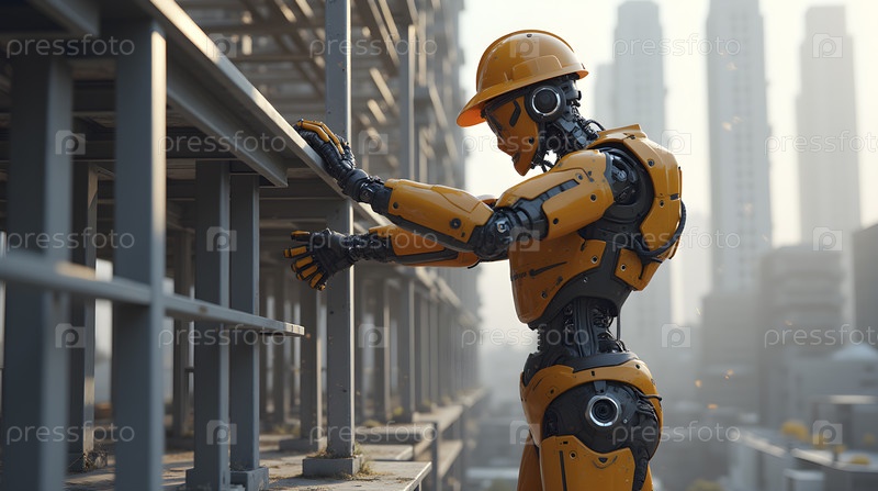 Роботизированный строительный работник собирает здание с точностью, Ai generated image