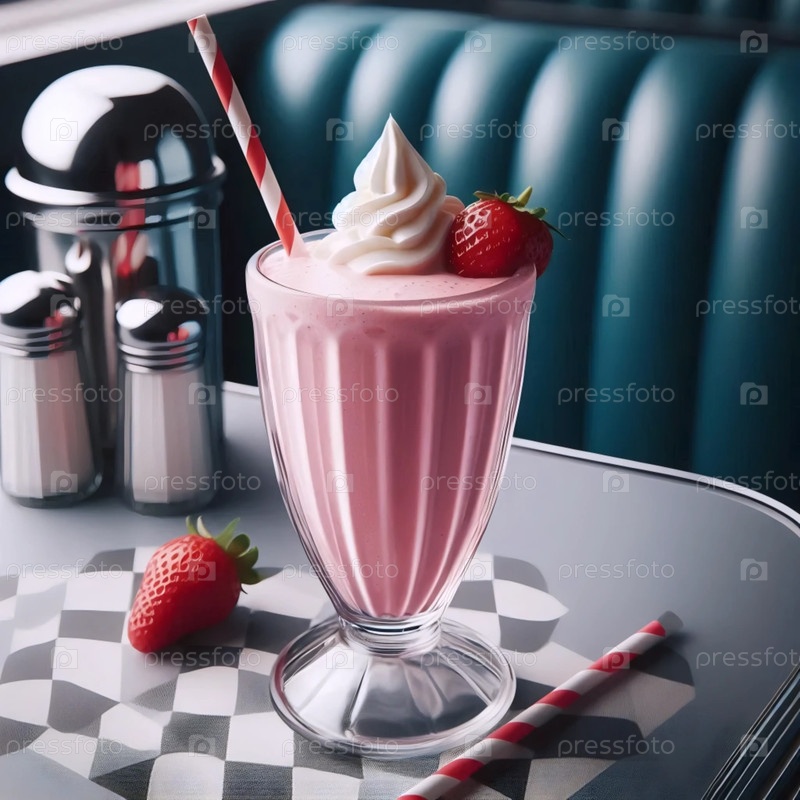 Винтажный молочный коктейль, подаваемый в классическом столовом стакане 1950-х годов Ai generated image