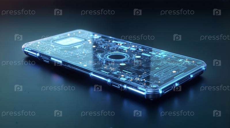 Концепция футуристического смартфона, изображение создано с использованием AI