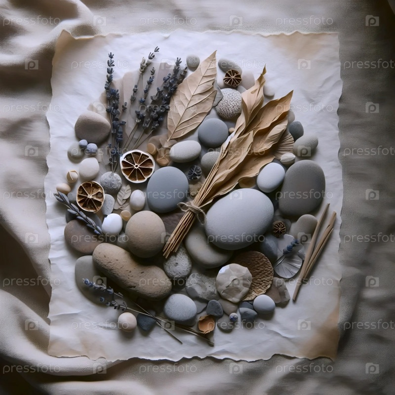 Знаменитый каменный и сушеные цветочные аранжировки, Ai генерирует изображение