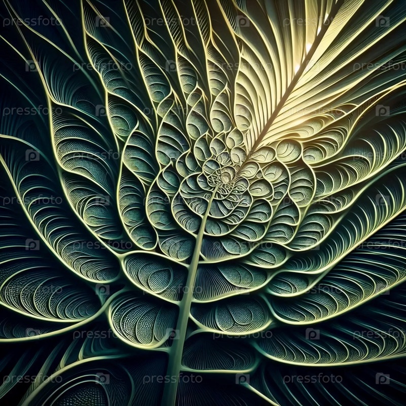 Фибоначчи в венах пальмовых листьев, Ai generated image