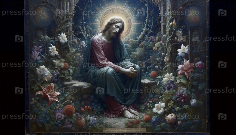 Прерафаэльский портрет Христа в Гефсимании, Ai generated image