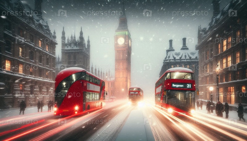 Биг-Бен в снежной буре, Ai generated image