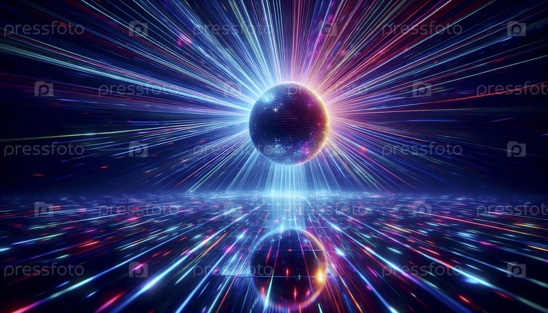 Сцена в ночном клубе с одним гигантским дискотечным шаром, отражающим красочные лазерные лучи во всех направлениях, Ai generated image