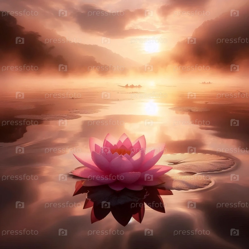 Священный цветок лотоса, индуистская религия.Древний символ осознания и просветления, Ai generated image