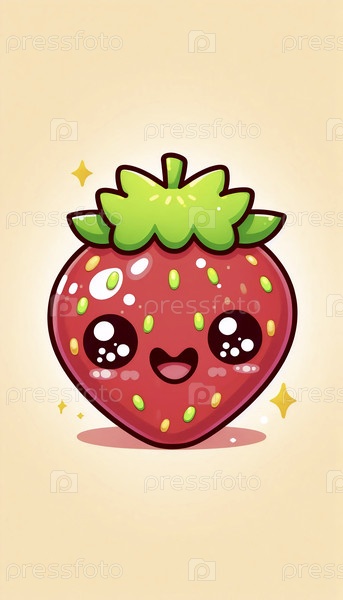 Милая клубника кавайи с веселым лицом, Ai generated image