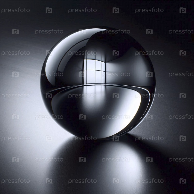 Совершенно сферическая капля воды на черной анодированной металлической поверхности, отражающая искаженную раму окна, Ai создала изображение