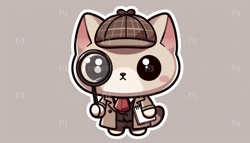 Милый стикер кавайского детектива чиби-кошки, Ai generated image