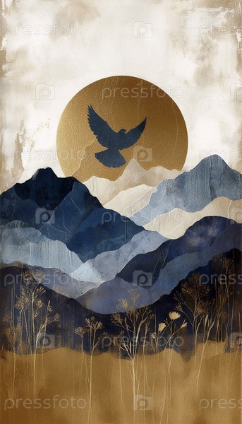Дикая вера в художественную печать гор и летающего голубя, Ай создал изображение
