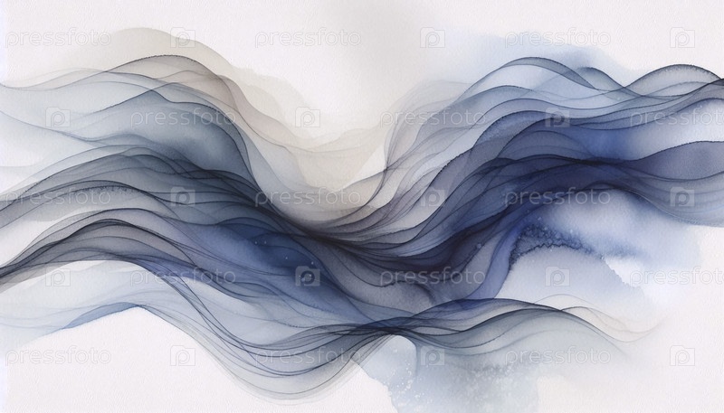 Абстрактные волновые акварели в индиго и креме, Ai generated image