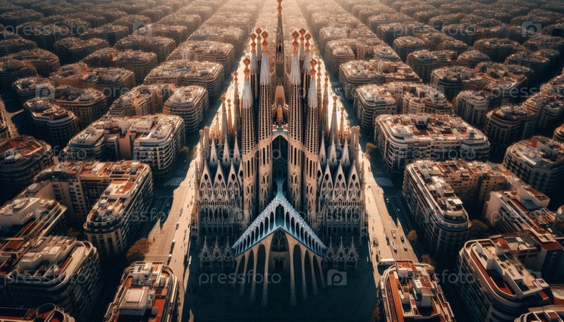 Вид с беспилотного летательного аппарата на Sagrada Familia, Ai создал изображение