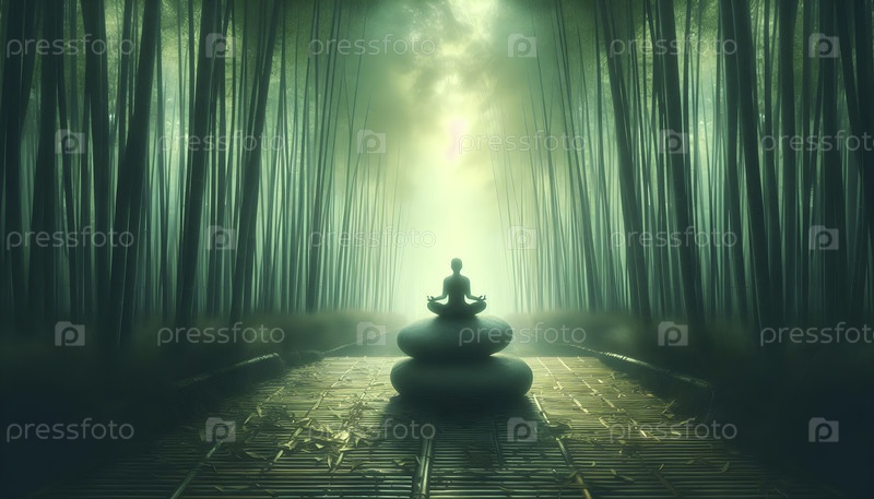 Каменная медитационная платформа в бамбуковом лесу, Ai created image
