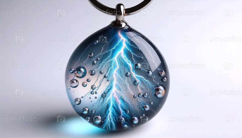 Молот из смолы с пузырями дождевых капель и эффектом молнии, Ai generated image