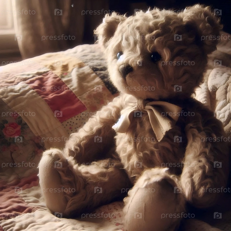 Винтажный плюшевый медведь с кнопочными глазами, Ai generated image
