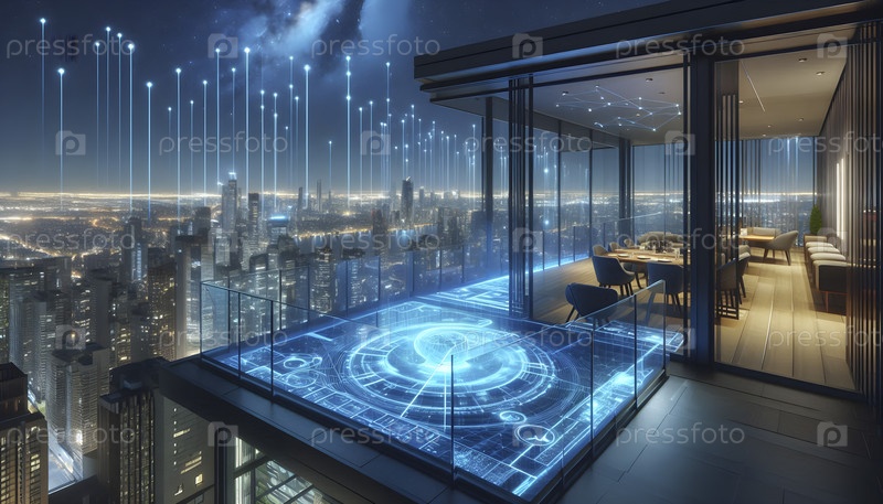 Терраса на крыше с умными стеклянными перилами, Ai created image